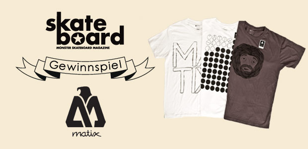 Da Skateboarden aber nun mal Progression bedeutet, wollen auch wir uns natürlich ständig steigern, weshalb es diesmal gleich drei Teile zu gewinnen gibt. Konkret gesagt sind es schicke T-Shirts von Matix die wir unter’s Volk bringen wollen. Die Frage die ihr dafür lediglich beantworten müsst lautet: