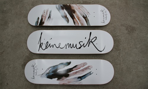 Keinemusik, das berliner Label für elektronische Musik, beherbergt nicht nur Dj`s wie Adam Port oder Rampa, sondern besticht auch durch ein sehr ästhetisches Artwork. Die minimalistischen Aquarell-Illustrationen und handgefertigten Typografien werden neuerdings auch auf Holz gedruckt. Sehr schön das Ganze!