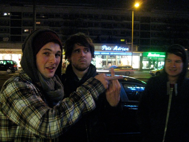 Vladislav und Benny Mirbach perfomen eine gemeinsame Ghettobrezel, der Praktikant ist sichtlich beeindruckt..