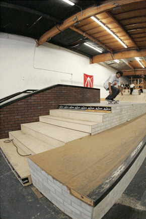 Nein, das geht schon alleine aus Versicherungsgründen nicht. Es ist manchmal auch ganz schön hart, hier keinen reinzulassen, denn die Kids aus der Nachbarschaft haben ja schon längst gecheckt, dass der Park hier ist. Aber ich kann sie trotzdem nicht skaten lassen, so leid es mir tut, denn wenn sich hier ein Kid was tut und die Eltern mich dann verklagen, dann war’s das. Manchmal sitzen hier Kids an der Tür und wollen nur etwas zugucken. Die zeigen mir dann ihre Schuhe und Boards mit meinem Namen drauf und ich hab ein richtig schlechtes Gefühl. Ich hasse es wirklich, so sein müssen, aber das Risiko ist einfach zu gross. Zum Glück gibt’s jetzt hier einen neuen Skateplaza um die Ecke, der öffentlich ist.
