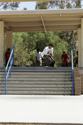 Hier hat sich seitdem so einiges verändert. Ich glaube, bis 2001 gab es hier in der Valley überhaupt keinen Park. Und die, die dann gebaut wurden, waren auch eher nicht so toll. Wir sind also ausschliesslich Street gefahren und zu der Zeit, als ich noch kein Auto hatte, sind wir nur die Spots gefahren, die man auch mit Pushen erreichen konnte – aber es ging trotzdem. Heute wäre das alles vielleicht etwas einfacher. Zu den ganzen guten Spots nach Torrance, Long Beach und Irvine bin ich aber erst gekommen, als mein Kumpel Nigel endlich sein erstes Auto hatte.