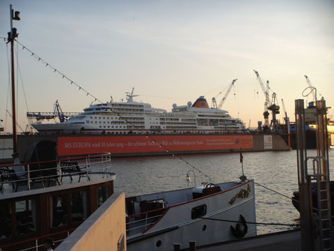 Als „Hedi“ gegen 23h gegenüber der AIDA und der MS Europa wieder fest machte, ging´s auf Landgang in den Grünen Jäger hinterm Kiez zum allgemeinen Abtakeln.