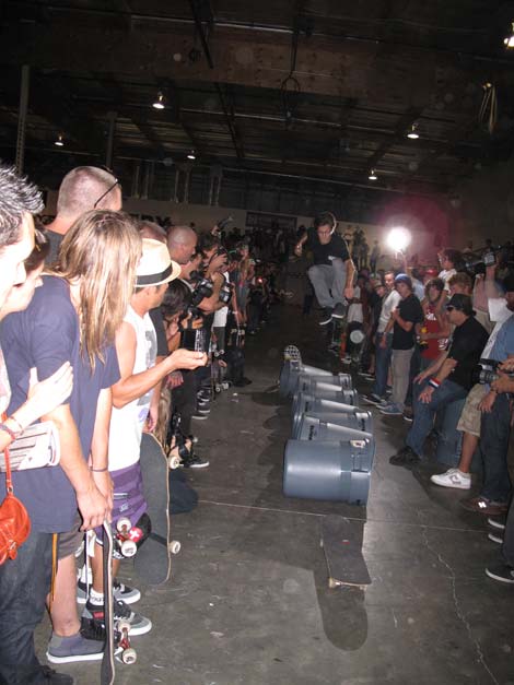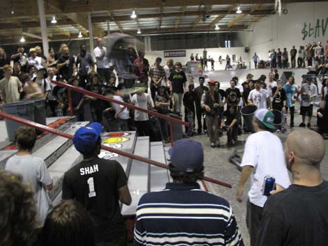 …später dann einen Besttrick Contest in der Halle, hier (zu erahnen) Billy Marks beim Treflip
