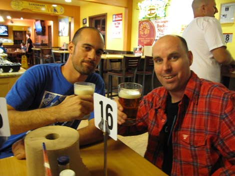 Manu (Rockers/Über) und Mike the Shopper (Mighty Distribution) geniessen das gute amerikanische Bier.
