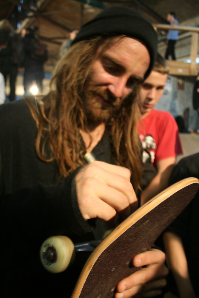 Rodney Mullen hatte leider sein Brett nicht dabei, dafür aber sichtlich gute Laune beim Autogramme schreiben