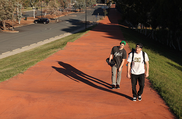 „Dann zwitscherte uns ein Vöglein, dass das Naturmuseum von Canberra guten Shit zum Skaten bereithalten würde. Also hieß es: Marschgepäck aufgesetzt und Fußmarsch bis zum Ende des Bürgersteigs!“