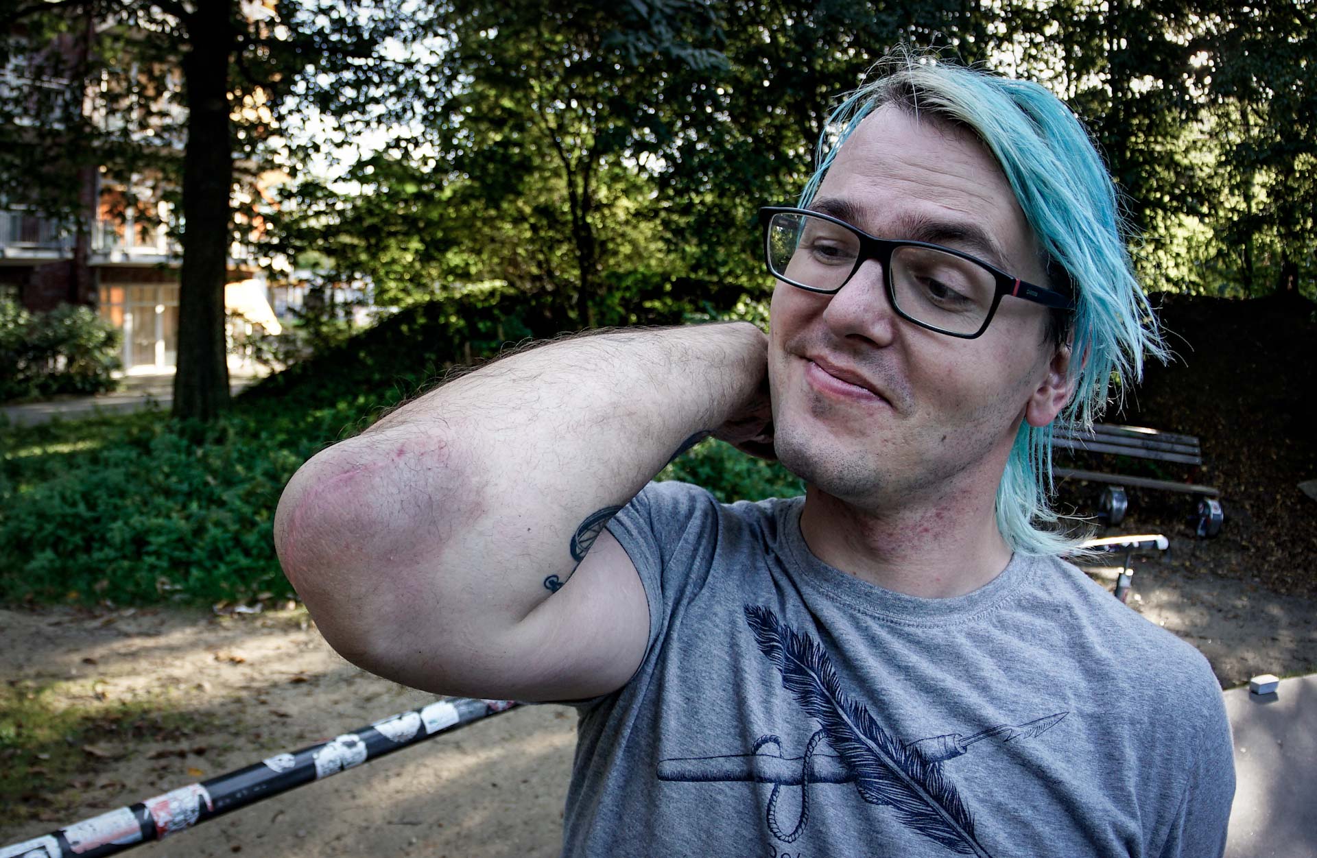 28. August 2008: ein harter Sturz. Der Tag, an dem ich mir den Rücken brach und sich mein Leben veränderte, von einer Sekunde auf die andere. Slams sind für Skater*innen normal. Man berappelt sich und versucht es weiter. Doch hier war es anders. Gern würde ich erzählen, dass es ein Surfunfall war, ein 15er Handrail oder ein Haiangriff. Aber nein, ich wollte nur von einer Party nach Hause. Schon doof, wenn man so angetüdert sein Gleichgewicht verliert, während man auf einem Geländer sitzt. Der erste Lendenwirbel war zersplittert. Als ich im Krankenhaus erwachte, war nichts mit wieder aufstehen.