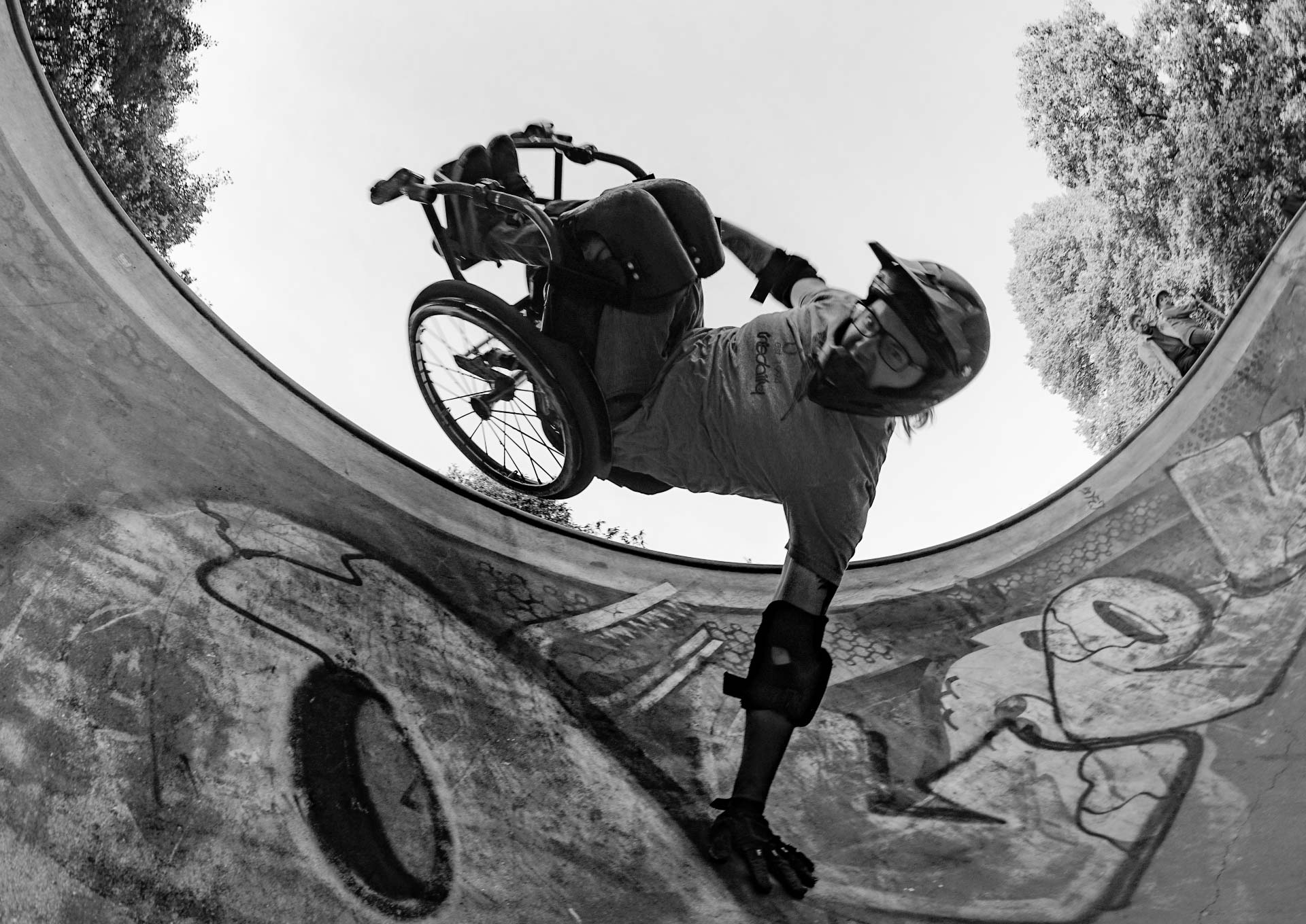 Zu sehen waren Rollstuhlbasketball, Rollstuhlrugby und vieles mehr. Das interessierte mich weniger, aber: Da waren Leute in ihren Rollstühlen im Fernsehen und boten rasanten Sport. Was ich über Rollstühle zu wissen glaubte, war Unsinn. Dann zeigte mir mein Kumpel Micha ein Video von Aaron Fotheringham. Auf seinem Rollstuhl machte er Backflips in Woodward. Er drehte sich auf einem Rad und grindete Rails: Mein Leben war nicht vorbei. Es fing neu an. Mit so vielen Möglichkeiten!