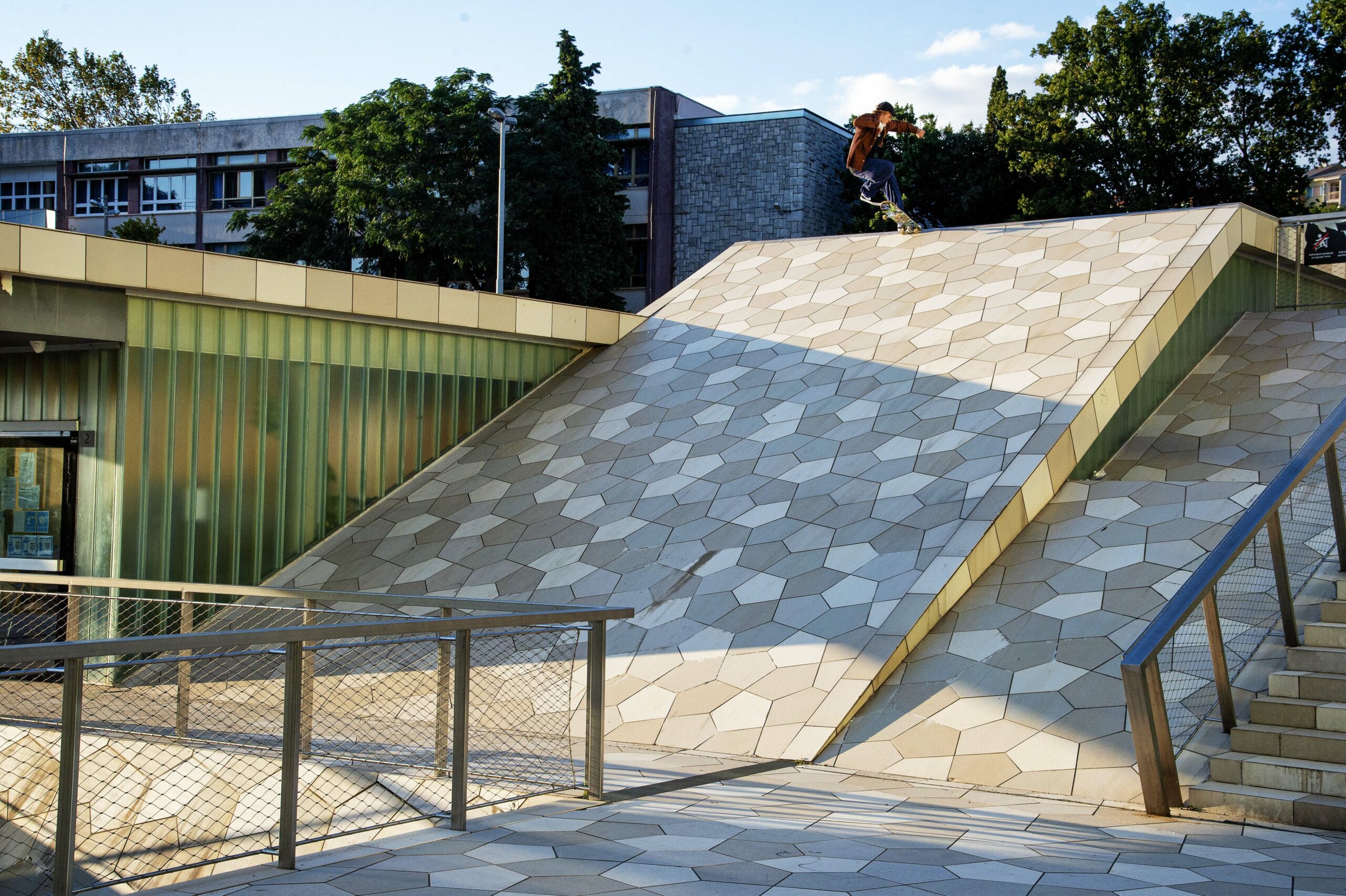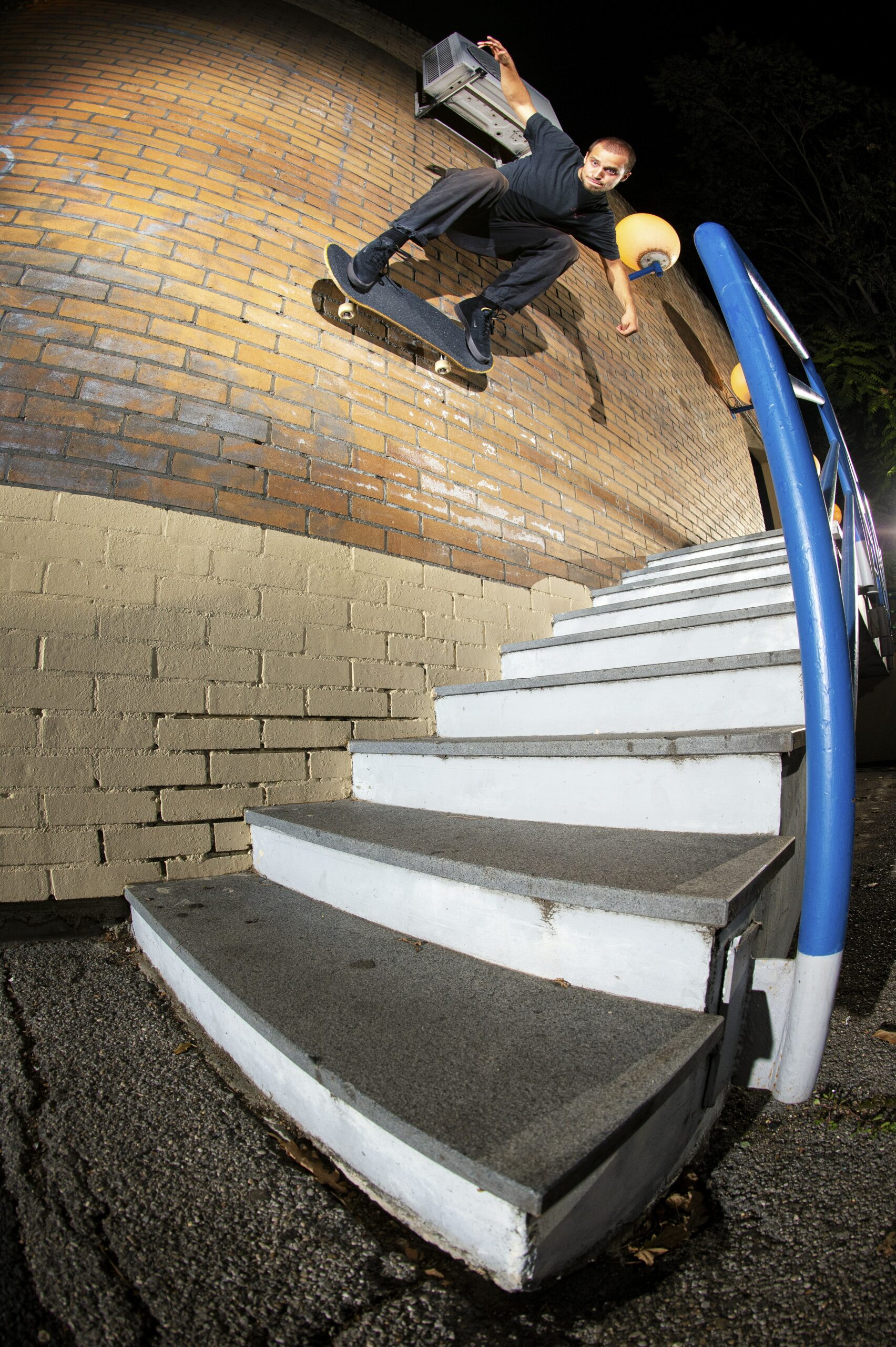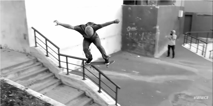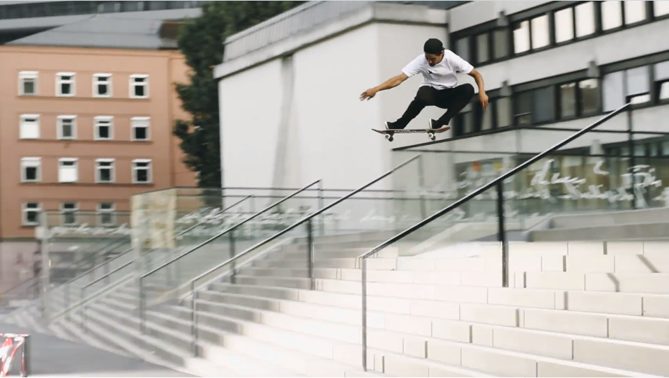 Daniel fand den Spot auf dem Weg zum Einkaufen. Es ist derselbe Spot, an dem Eniz den langen 50/50 und Emil den Boardslide im Video gemacht haben. Dummerweise blockierten drei Autos die Landung. Eniz und Emil machten sich an die Arbeit, was einige Zeit dauern sollte. In der Zwischenzeit versuchte Daniel sich an Telepathie und verfolgte jeden Passanten mit Adleraugen, immer in der Hoffnung, diese Autos endlich los zuwerden, aber es fruchtete nur wenig. Drei Stunden Wartezeit und Tricks von Eniz, Emil und Kuba später war Daniel so motiviert, dass er am Ende nur drei oder vier Versuche benötigte.