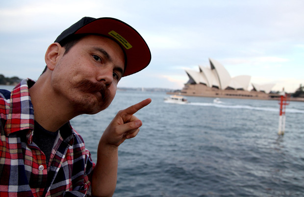 „Nach einer Menge schmackhafter Skate-Manöver sind wir auf eine kleine Sightseeing-Tour durch Sydney gegangen und haben dabei so ein seltsames Gebäude gefunden, das wie ein Gürteltier aussieht. Man sagte uns, es sei ziemlich berühmt, also hat sogar Fabi seine Kamera ausgepackt.“
