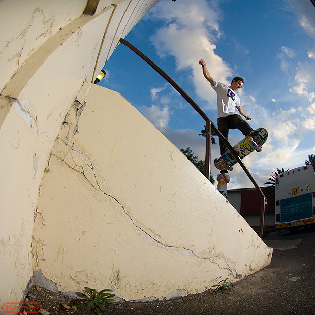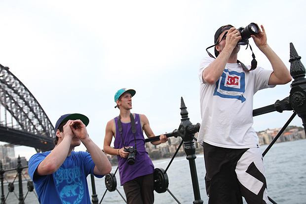 „Am Tag darauf wurde es Zeit für einige stumpfe Slide-Manöver an diesem ikonischen Spot in Sydney. Leider wurde die Session rapide verkürzt durch das ansonsten ziemlich seltene Auftreten der australischen Polizei.“