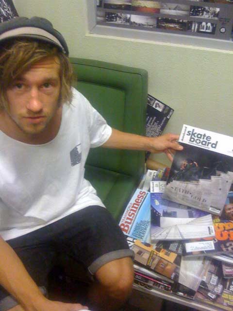 Und zwar im Volcom Office zwischen Transworlds und SkateboardMags