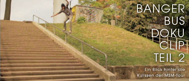 Der zweite Teil der Banger Bus Doku beginnt mit einem Flipspektakel am Doubleset, sucht dann die Wolfskuhle auf und führt über Alex Reinke’s Garten in Münster, wo Mini Ramp gefahren und der Luxus eines Whirlpools genossen wird, bevor die Tour noch einmal so richtig Fahrt aufnimmt. Gebrochene Handgelenke, Michi von Fintels angsteinflösender Slam in Hamburg und natürlich noch Tobi Fleischer, der in den Rachen des 33er Monsters in Bremen springt – und das Ding gnadenlos erlegt.