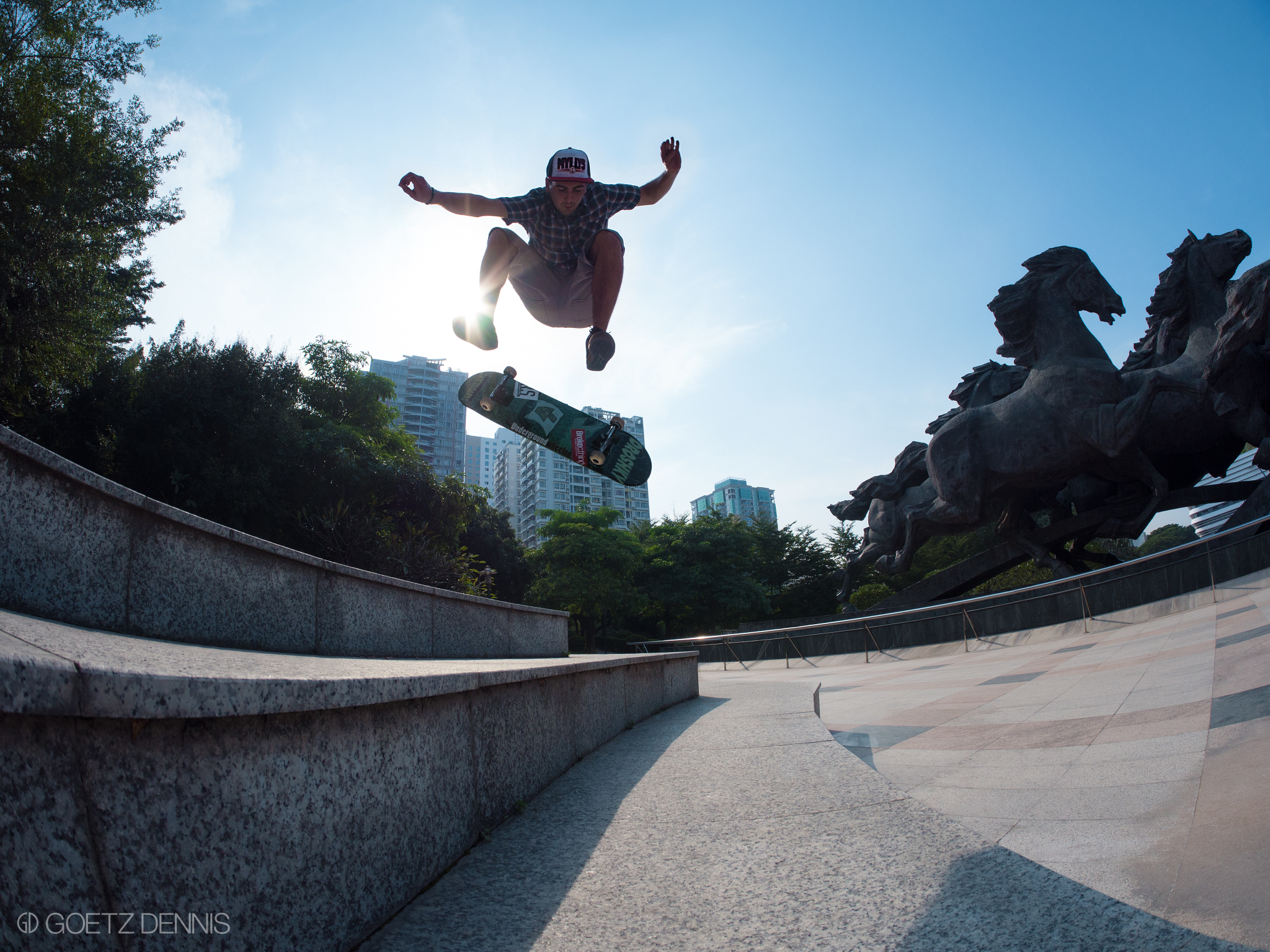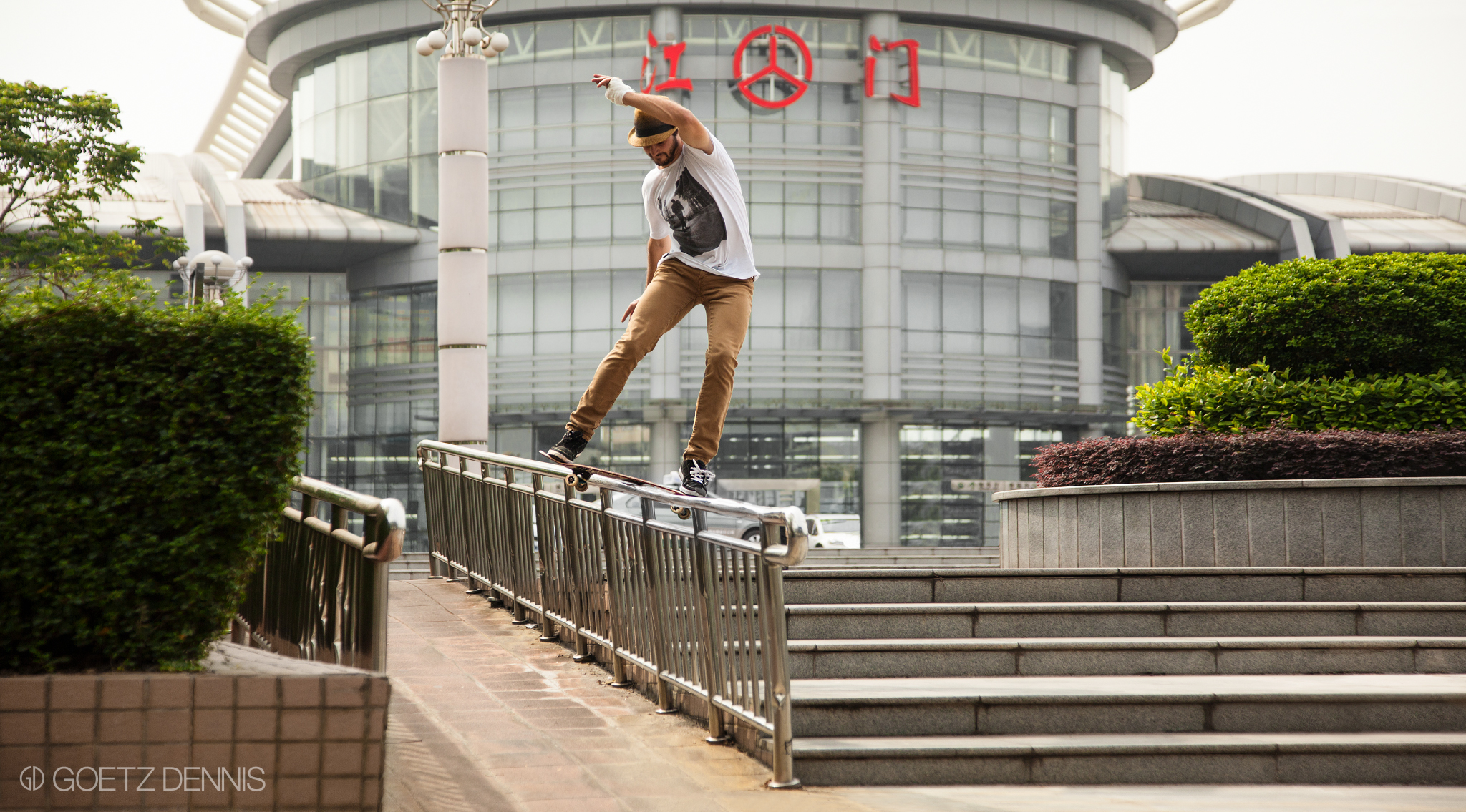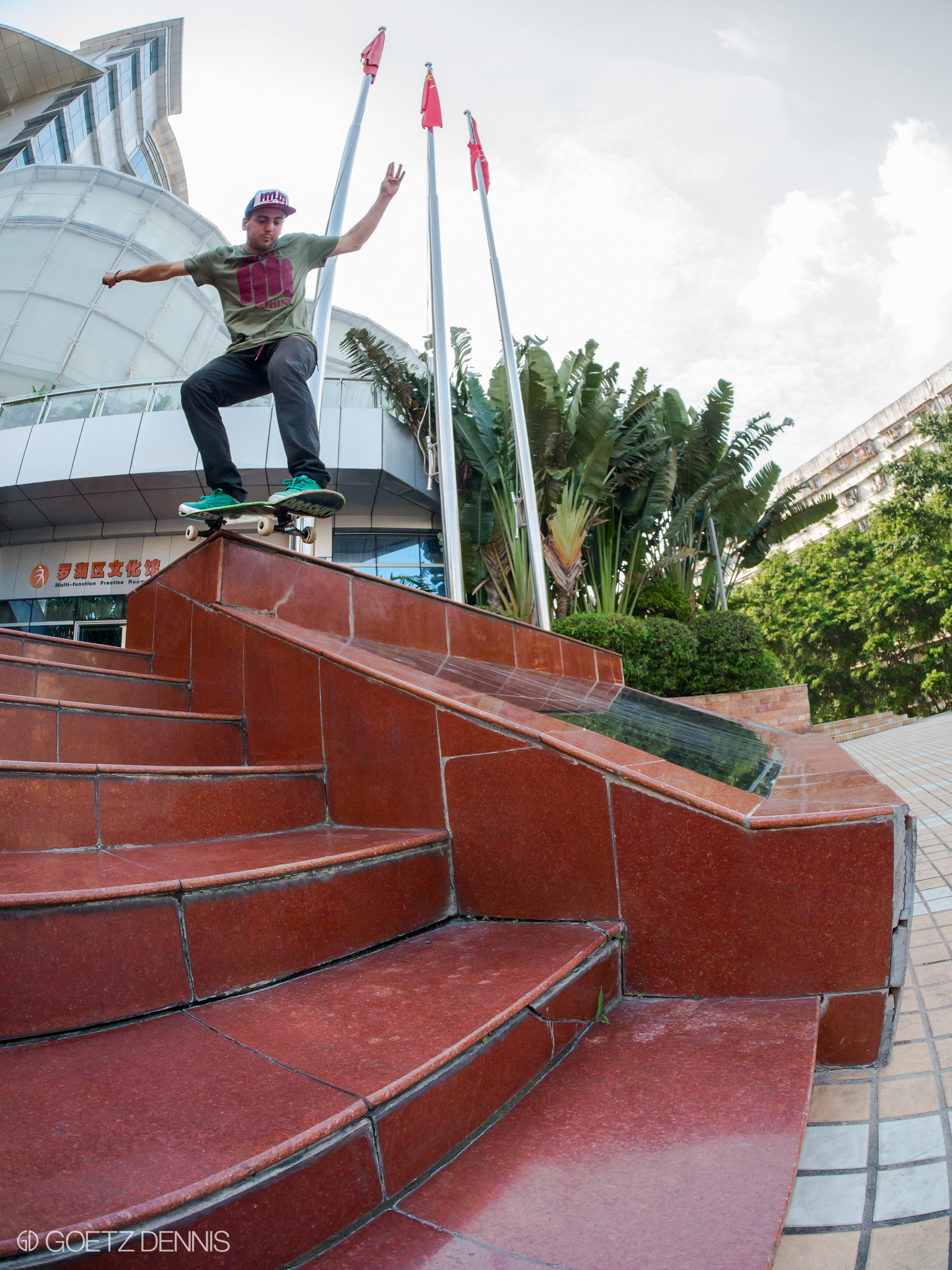 你好!nǐ hǎo China. Hier wurden wir erstmal gebührend mit einer Flasche Tsingtao von den BSS Jungs empfangen. Etwas übermüdet erledigten wir am darauffolgenden Morgen die nötigsten Dinge und standen kurz darauf schon mit unseren Boards auf der Strasse. Für uns Deutsche, die den ersten Kickflip auf Kopfsteinpflaster lernen, war erst mal gar nicht klar welchen Spot wir als erstes abchecken sollten. Marmor soweit das Auge reicht… Von da an wurden wir von den Chinesen immer gut behandelt und hatten nicht mal Ärger mit den Securities, Kurzes Selfie und ab gehts.