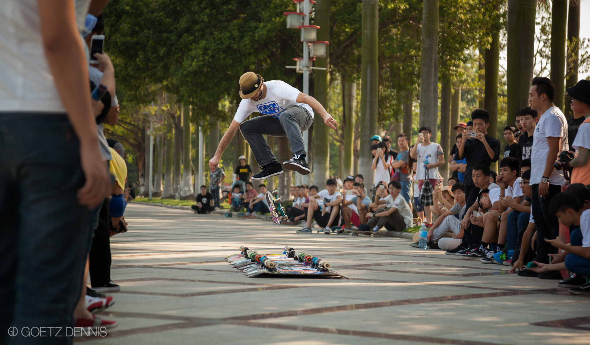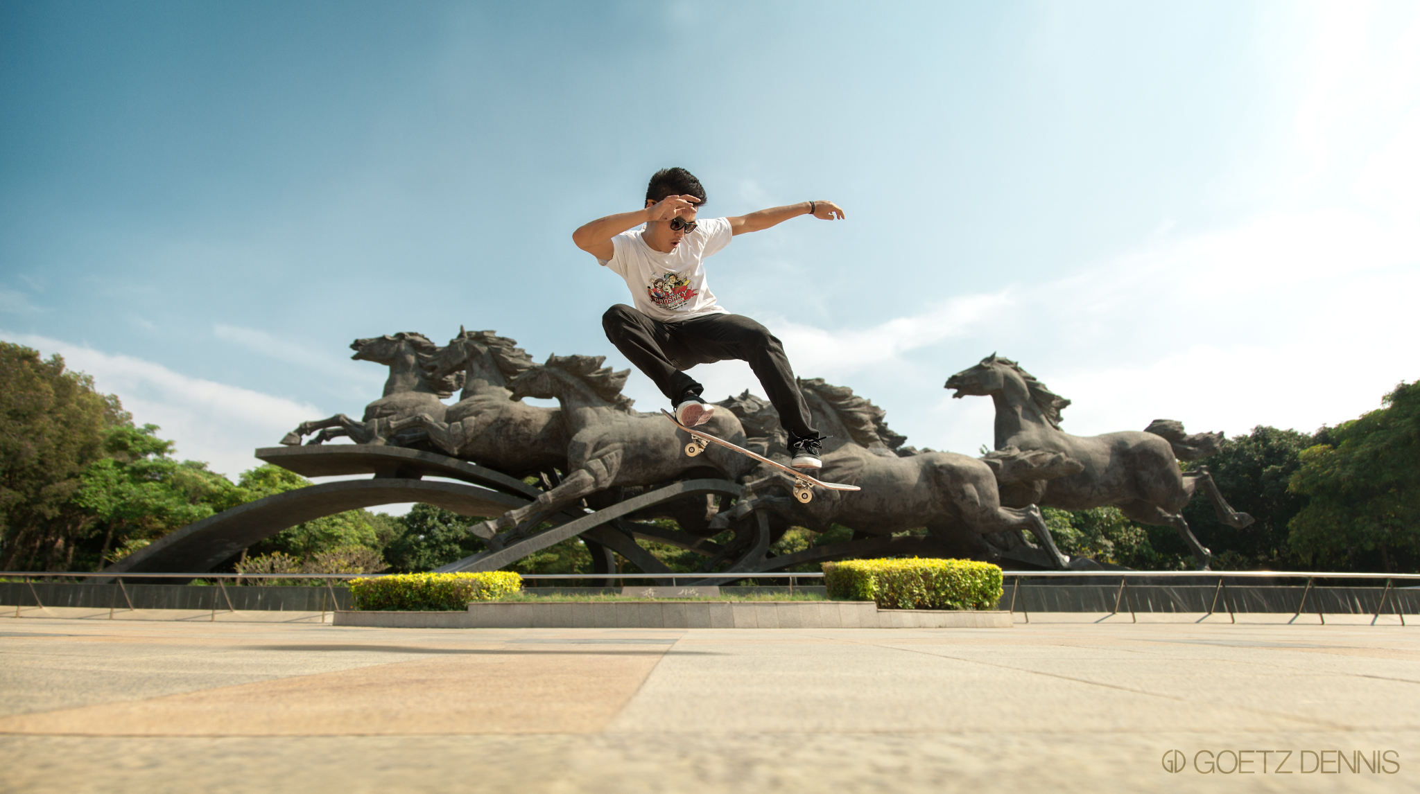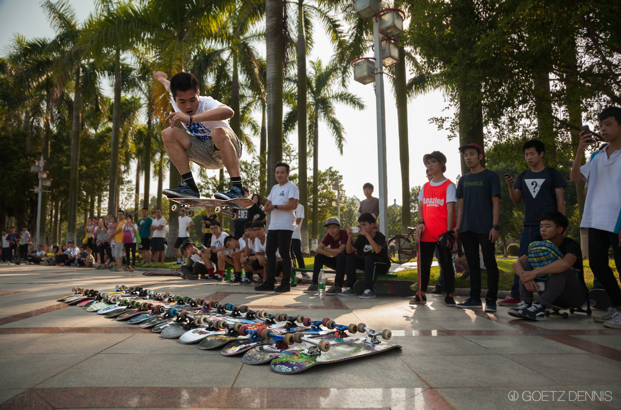 你好!nǐ hǎo China. Hier wurden wir erstmal gebührend mit einer Flasche Tsingtao von den BSS Jungs empfangen. Etwas übermüdet erledigten wir am darauffolgenden Morgen die nötigsten Dinge und standen kurz darauf schon mit unseren Boards auf der Strasse. Für uns Deutsche, die den ersten Kickflip auf Kopfsteinpflaster lernen, war erst mal gar nicht klar welchen Spot wir als erstes abchecken sollten. Marmor soweit das Auge reicht… Von da an wurden wir von den Chinesen immer gut behandelt und hatten nicht mal Ärger mit den Securities, Kurzes Selfie und ab gehts.