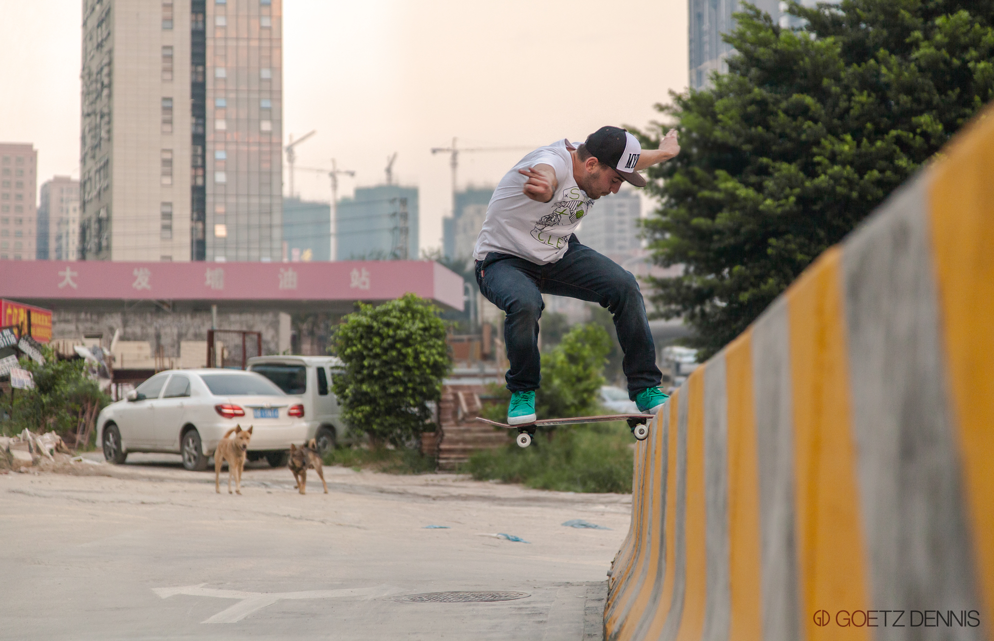 Den ersten Tag in Shenzhen verbrachten wir recht spontan, für die folgenden Tage nahmen wir uns dann jedoch den ein oder anderen schon bekannten Spot vor. Man kann in China eigentlich direkt auf die Strasse gehen und sich ein Curb oder ähnliches suchen, aber ausgecheckt haben muss man den ein oder anderen legendären Spot ja schon – Civic Center in Shenzhen, die Marmor Waves ebenfalls und die rote Welle in Guangzhou darf natürlich auch nicht fehlen. Da in China der Maßstab jedoch etwas größer ausfällt als in den heimischen Städten und Shenzhen definitiv eine Mega-Stadt ist, sind die Wege nicht zu unterschätzen. Die Tage starteten wir mit einer Portion „Dirty Food“, so wie es die Chinesen gerne nennen, aus einer Garagenküche. „Echt überraschend gut wenn man sich nicht zu viele Gedanken macht, haha.“