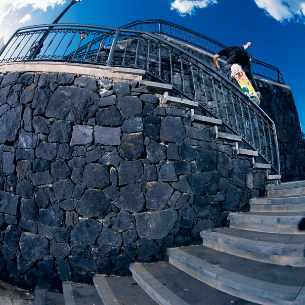Außerdem gibt’s noch ein paar Photos, die einen Eindruck vermitteln, wie sich die Jungs bei den Locals unbeliebt machten, weil sie befeuert durch überschüssige Kräfte deren Flatrails verbogen, wie sie, abseits von Rails und Curbs, die mondartigen Landschaften durchwanderten und auf welch gefährlich anmutenden Tierchen sie dort stießen.