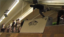 http://mpora.com/videos/19mVTjWpQ Nach dem Best Trick Contest vom Vortag ging’s beim Wängl Tängl Miniramp Tag Team Contest der Ästhetiker und Vans noch einmal so richtig ab. Zweierteams aus ganz Europa traten in der Rampe gegeneinander an und zerlegten das Ding mal so richtig. Harte Tricks, endlose Lines und zahlreiche Combo Moves wurden dem Wängl Tängl Publikum quasi im Akkord geboten. Schließlich setzten sich die Engländer Andy Scott / Josh Young durch und belegten völlig zu Recht vor dem Tag Team mit Phil Zwijsen, dem MVP des Abends, und Micky Iglesias, sowie den Franzosen Julien Benoliel / Marc Haziza Platz eins. Falls Synchronskaten mal irgendwann olympisch werden sollte, dann haben die Beiden ihre Medaille definitiv schon im Sack.